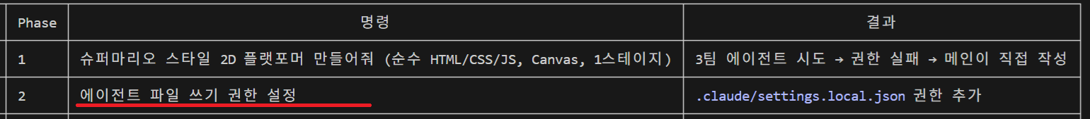 백그라운드에서 동작하는 AI 팀원은 사용자에게 "파일을 써도 될까요?"라는 확인을 요청할 수 없어서, 자동으로 거부된 겁니다.