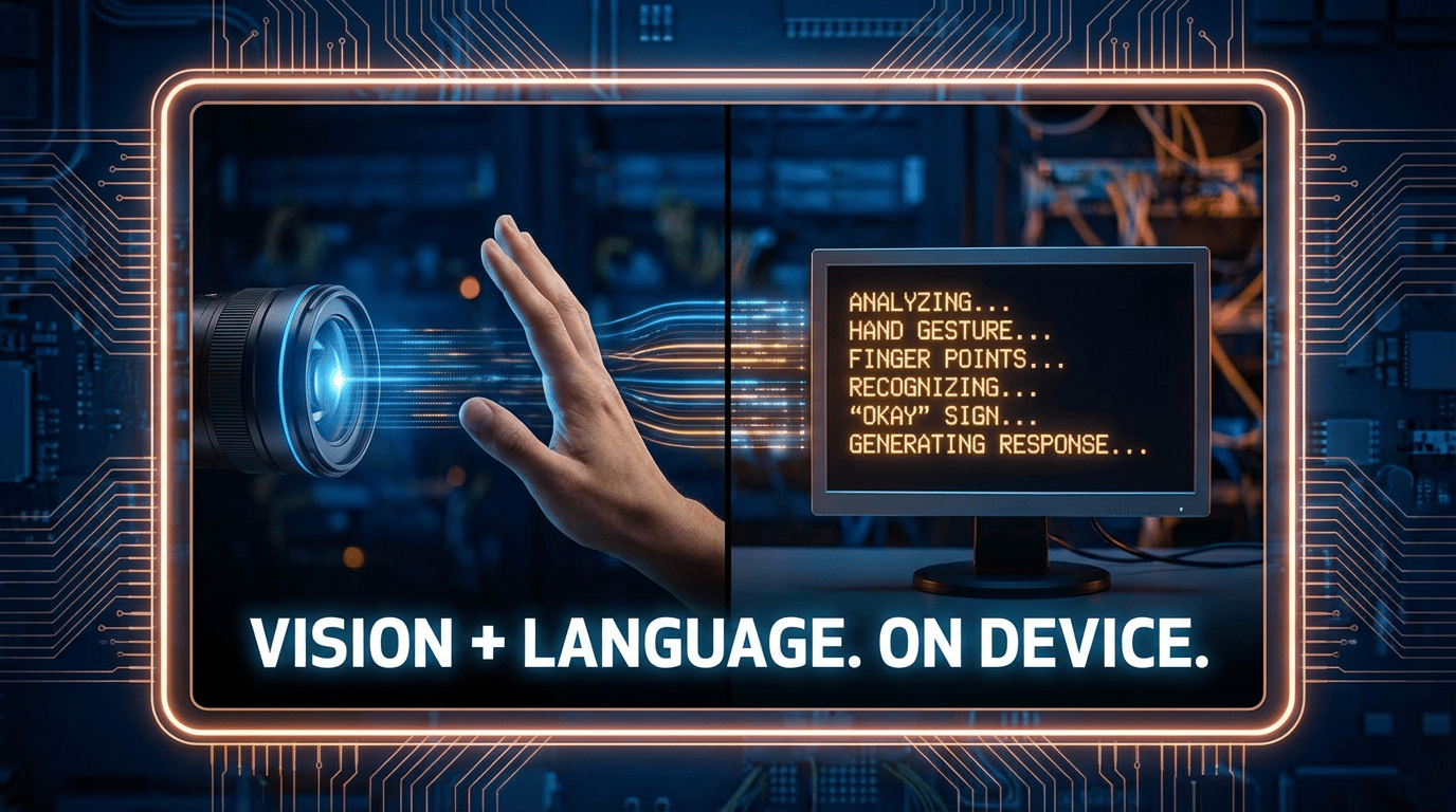 카메라로 물건 찍으면 → MCU가 "이게 뭔지" 인식하고 → 거기에 맞는 텍스트까지 생성. 전부 로컬에서 처리해요.