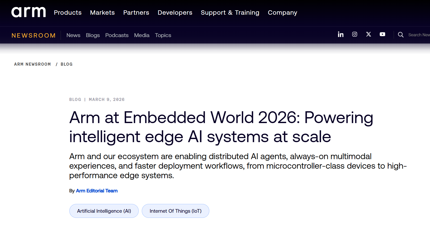 Arm 공식 발표 원문은 여기서 볼 수 있어요: 👉 Arm Newsroom — Embedded World 2026