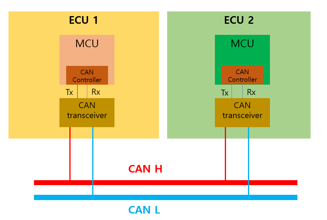 아래 그림과 같이 2개의 ECU가 존재 한다고 할때, MCU에서 해석한 정보를