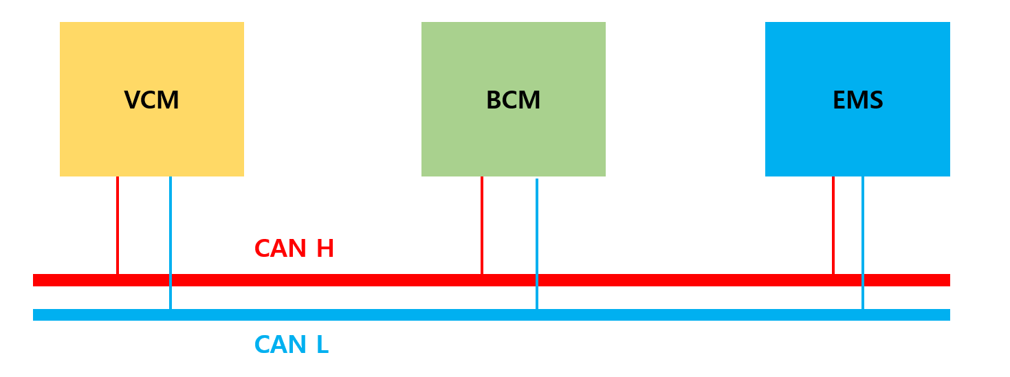 다른 ECU는 다 CAN H, CAN L 라인과 연결이 되어 있기 때문에