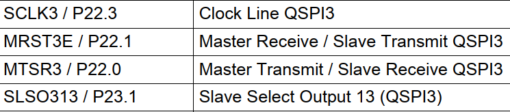 const IfxQspi_SpiMaster_Pins pins = {&IfxQspi3_SCLK_P22_3_OUT, /* SCLK */