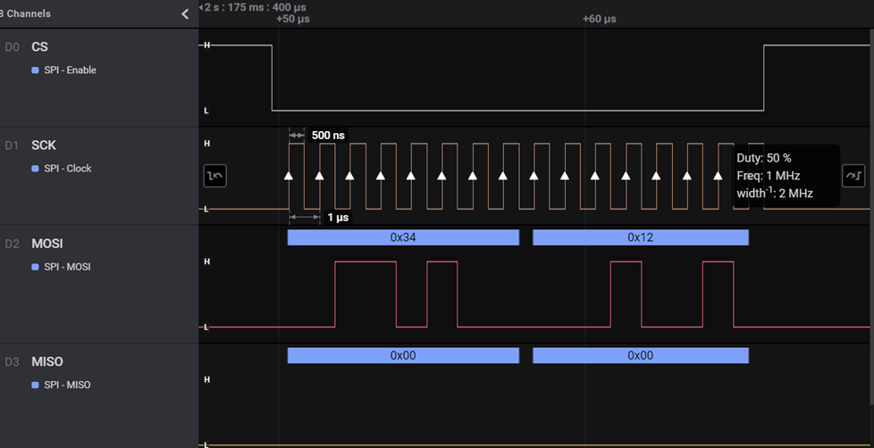 SCK의 주파수도 1MHz로 보내고 있는 것을 확인할수 있습니다.