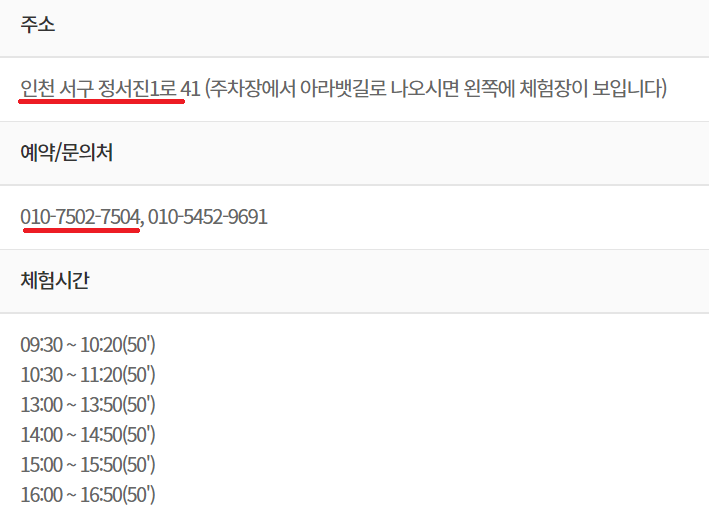 체험 시간은 50분입니다.