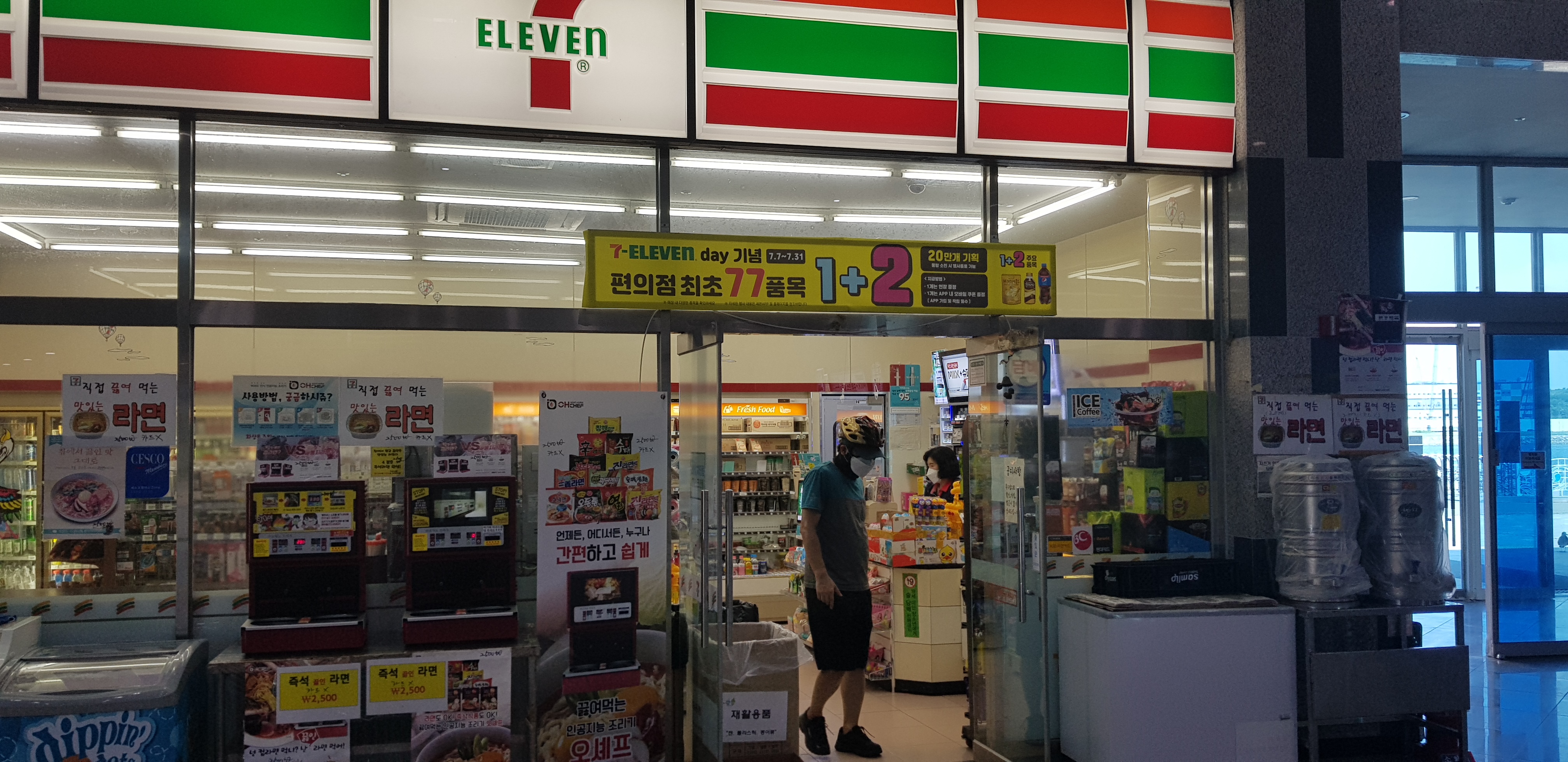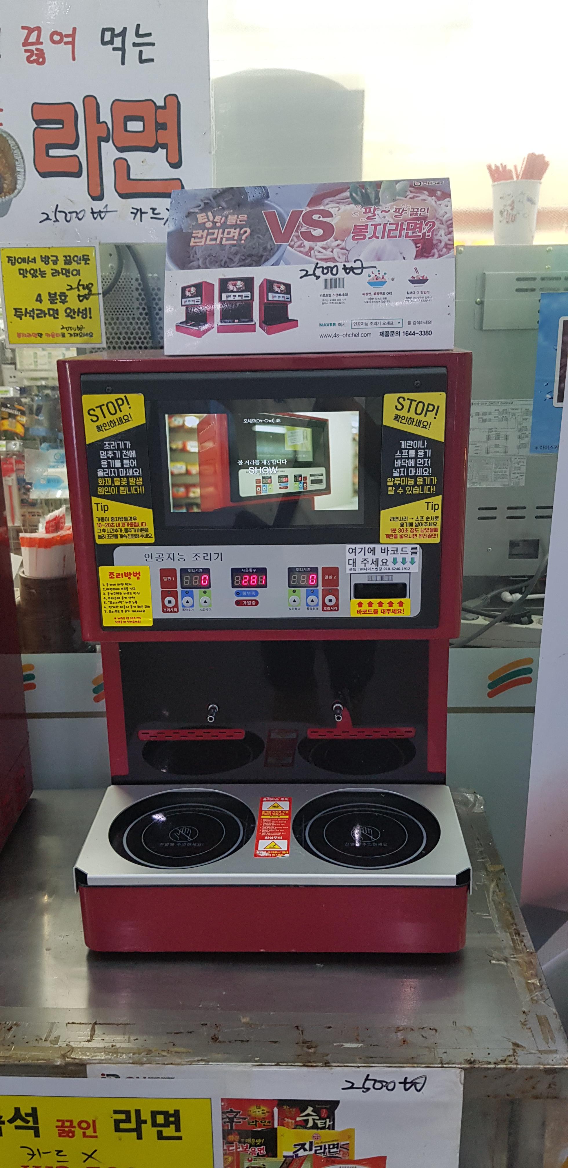 이곳 편의점에는 끓여먹는 라면 코너가 있어서 참 신선했습니다.
