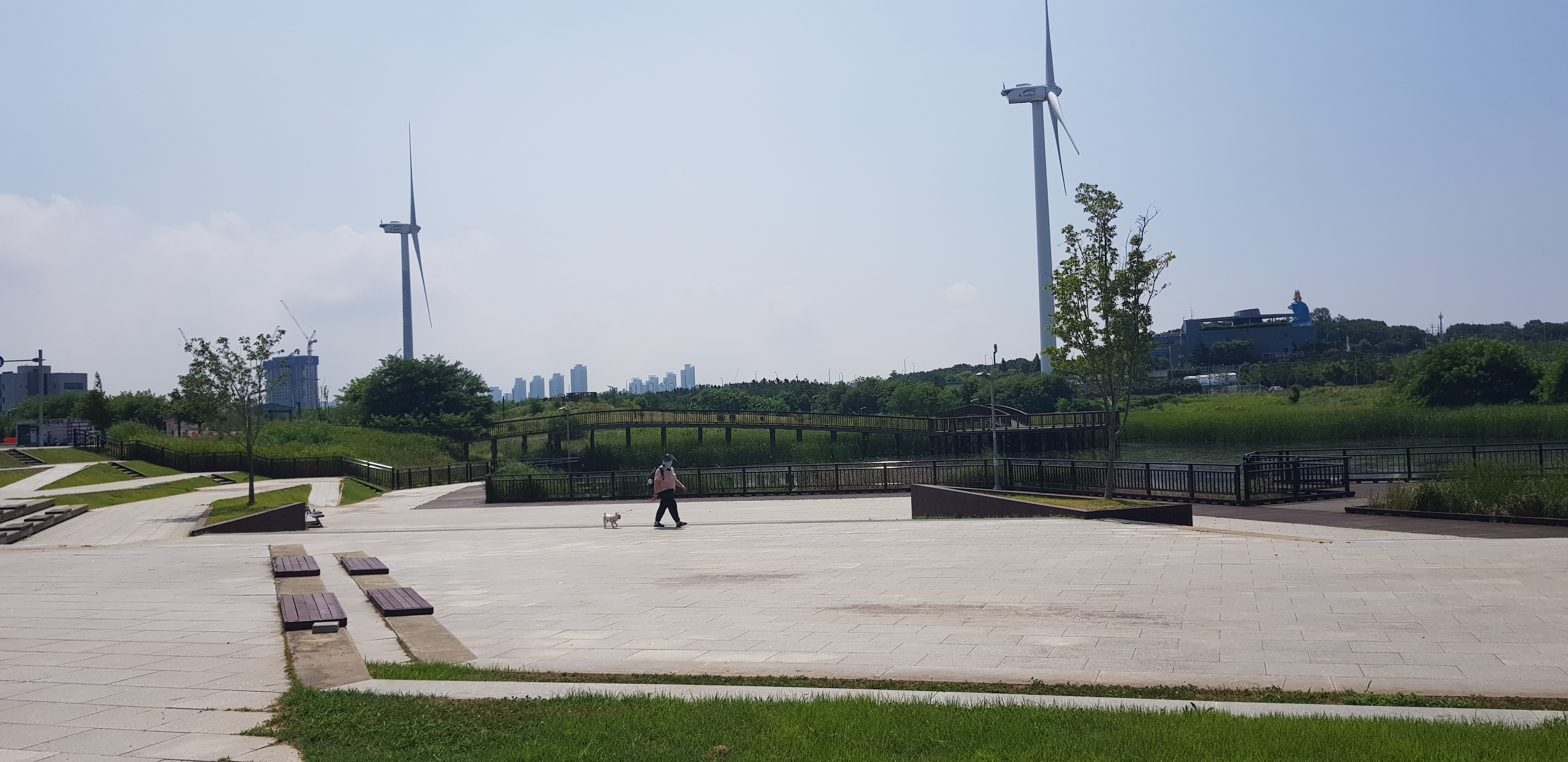 저기 우리말고 산책하는 강아지와 사람이 보입니다.