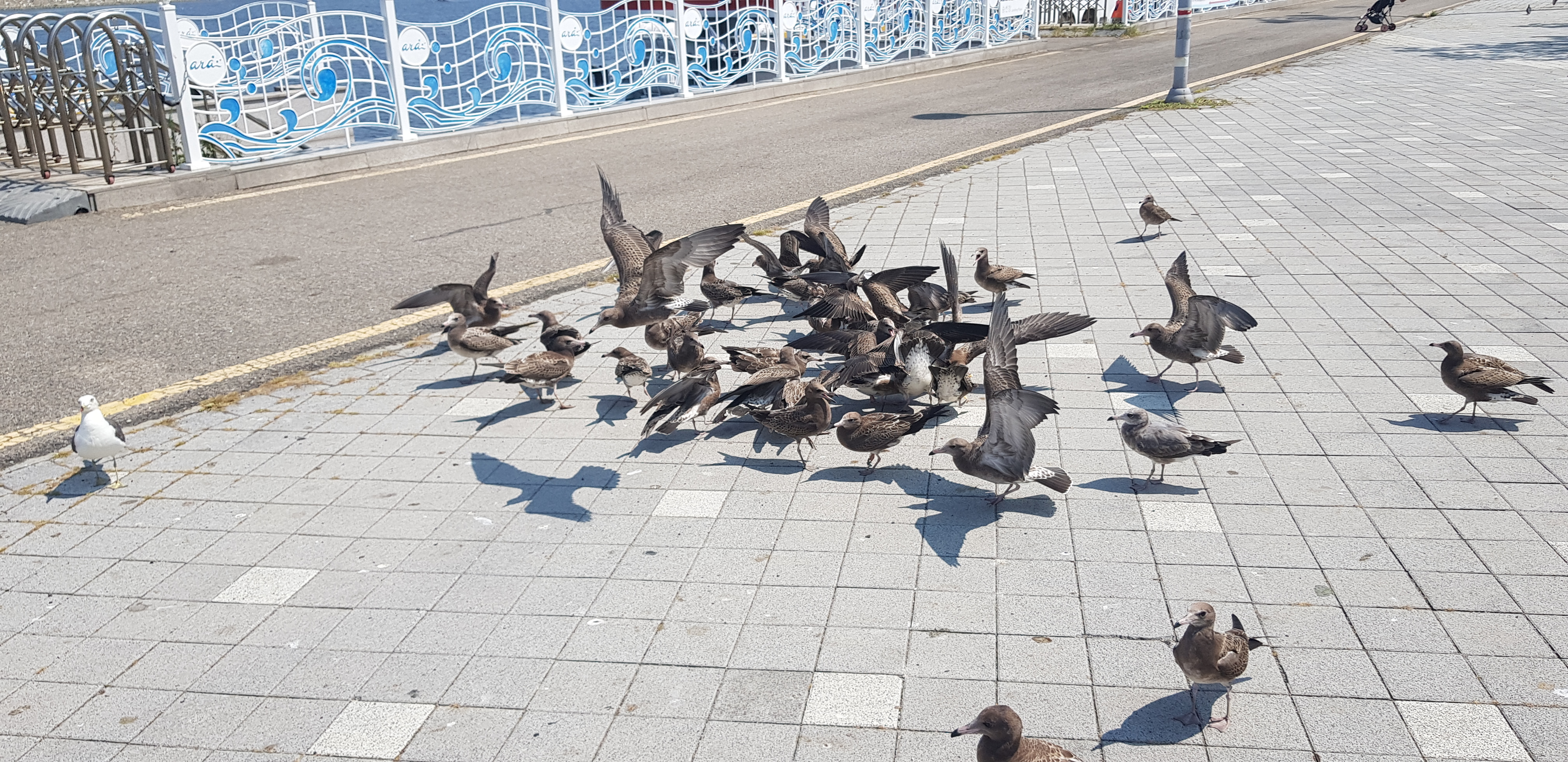 이곳에는 갈매기들이 많이 있습니다.