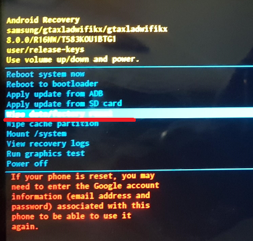 2. + 키를 눌러서, [wipe data/factory reset]으로 이동시키세요.