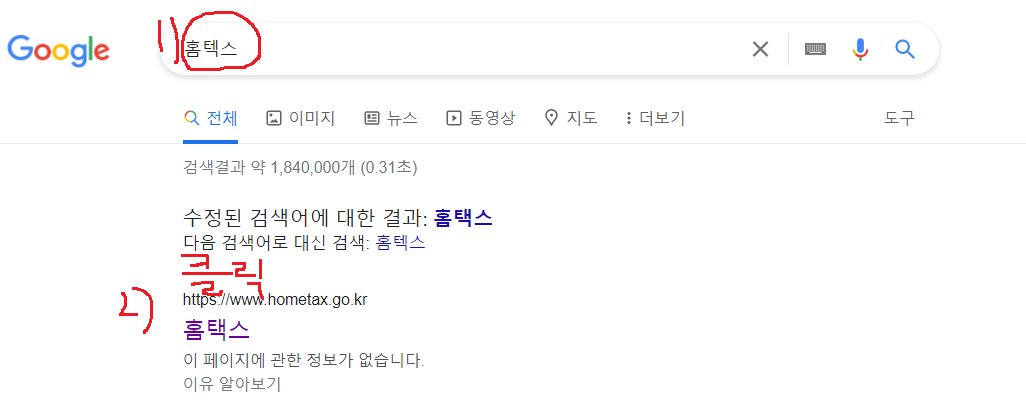 1. 검색창에서 홈텍스를 입력하고 아래 홈텍스 사이트를 클릭하세요.