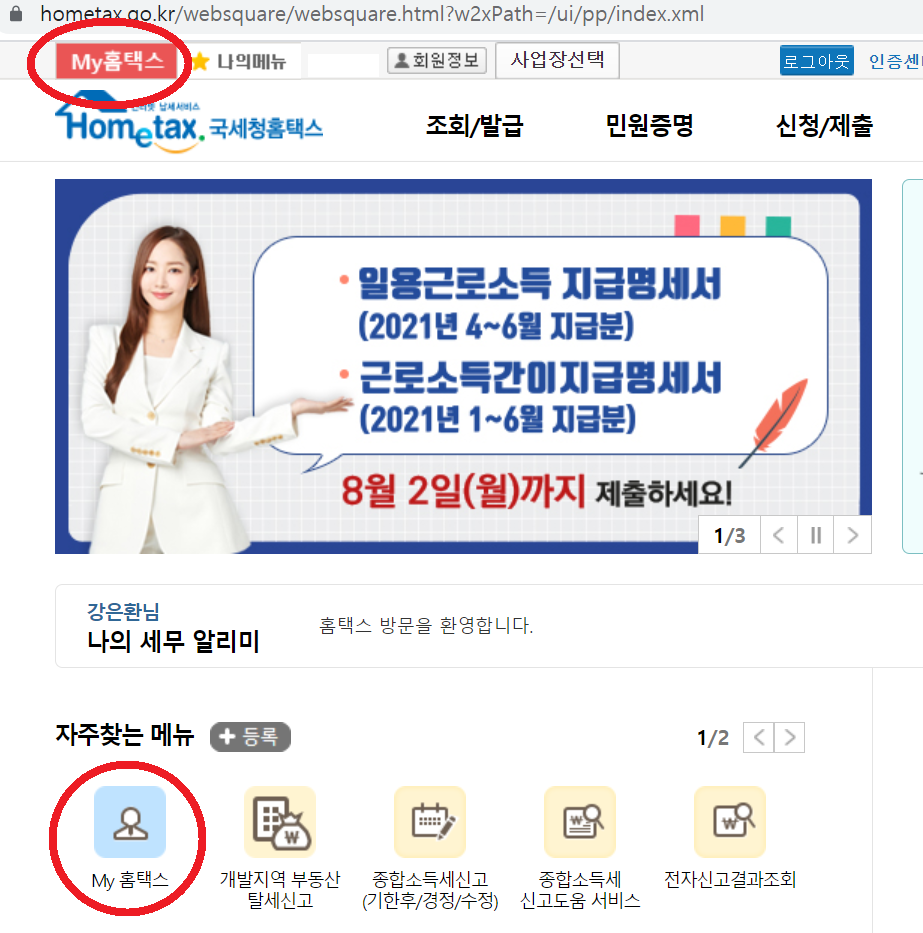 하지만, 굳이 회사에서 출력하지 않고 집에서도 홈텍스에서 출력이 가능합니다.