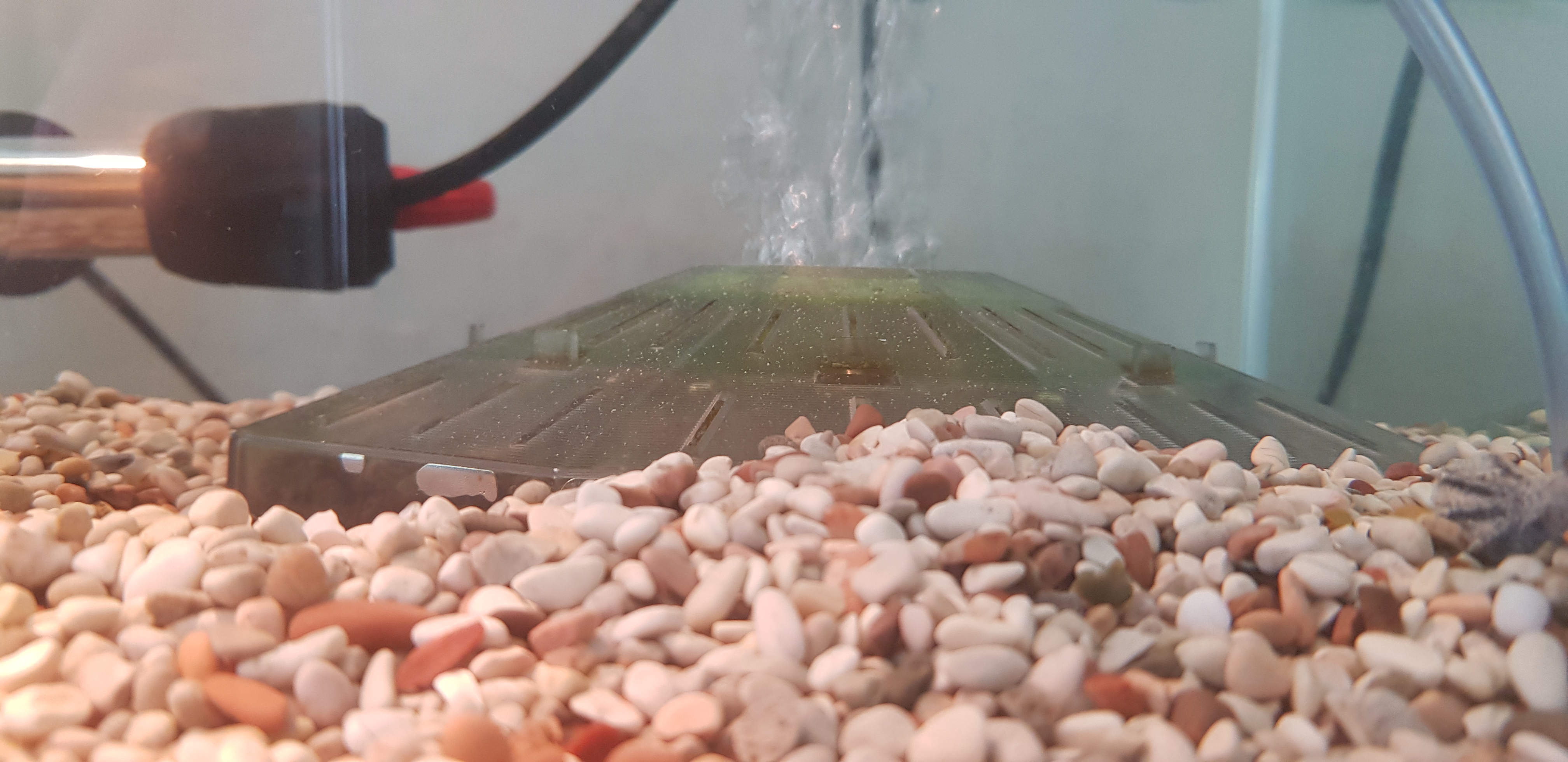 저는 여과기를 저면에 설치하고, 소음을 유발하는 펌프를 외부에 설치하는 장비를 구매하였습니다.
